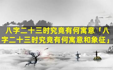 八字中的二十三时 🦊 不仅具有 🌸 阴阳五行属性,还,蕴含着丰富的特殊寓意在四柱预测中有 🦉 着广泛的应用。
