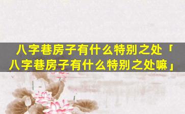 八字巷的房子具有以 🐘 下一 🦋 些 🌿 特别之处: