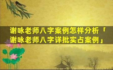 谢咏 八字案例分析 🐟