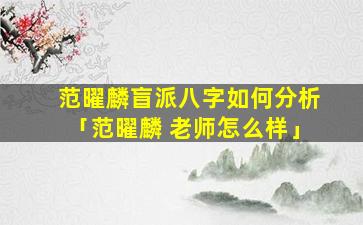 范曜麟盲派八字分析法是一种独特的四 🐵 柱预测术,重,视格局和用神的推定强调五行生克和六亲关系的吉凶。