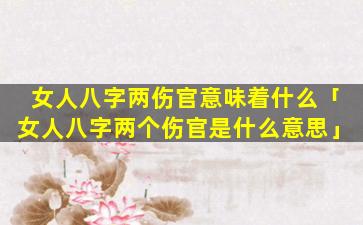 在八字 🐞 命理中,伤,官代表一位女性个性叛逆、才 🌲 、华横溢口 🐎 才伶俐。当,一个女性的八字中有两个伤官时称为两伤官“”。