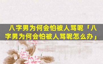 为 🐱 什么八字 🌼 男会怕被人骂