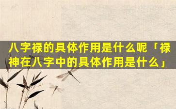 八字禄神 🌳 的作用