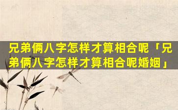 兄 🐵 弟俩八 🐋 字相合的条件 🐴