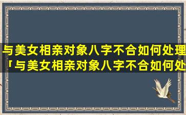 与美女相 🐕 亲对 🕸 象八字不合如何处理关系 🐳