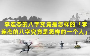 总体来看,李,连,杰的八字命理不错正印格奠定了聪明智慧的基础食伤生财有利于事业发展和财运提升。需,要 🌿 ,注。意的是水旺伤身平时要多注意身体健康