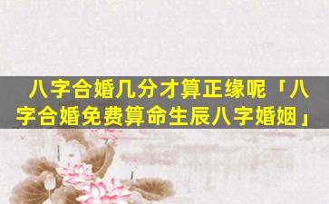 八字合婚中,几分算正缘并没 🦊 有固定的标准。一,般,来说命中出现以下几种情况可以视为可考虑的正缘: