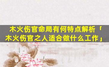 木 🐎 火伤官命局 🐈 特点: