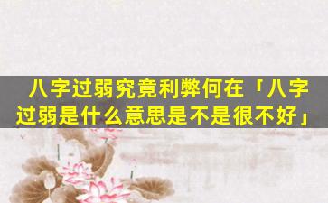 八字过弱的利弊并不 🐒 绝对,具体情况还需根据八字的整体格局和用神来分析。如,果八字 🐋 过弱且用神有力则利大于弊如果八字过弱且用神;无,力。则弊大于利