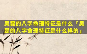 综合解读:吴磊八字属于正印格,为,人正,直聪明上进有贵人相助。七,杀,旺,食。神,生,财。表,示,命。主有能 🐘 力和魄力善于赚钱但杀印相生也需要控制情绪以免冲动行事四柱干支相冲相合表示命主早年经历波动但中年以后运势较好