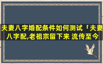 八字婚 🌸 配的条 🦊 件测试 🌹
