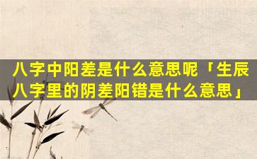 生辰八字 🐕 中,"阴"差 🦊 阳错指的是: