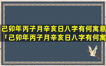 己卯年丙子月 🐋 辛亥日 🦁 八字 🌲