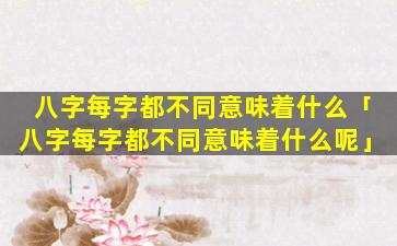 “八字每字都不同”一般是指八字命理学中八个干支组合的八个字中每个 🐧 字都不,相同。这种八字结构具有以下含义: