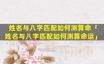 姓名与八字匹配测 🍁 算 🐴 命运方 🐎 法