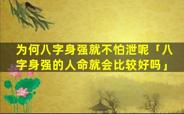 该说法不 🌳 正 🐋 确。八。字 🐼 身强不代表不怕泄