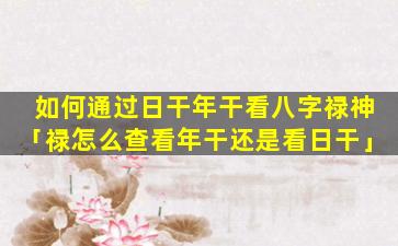 通过日干年 🌲 干看八 🌷 字 🐒 禄神