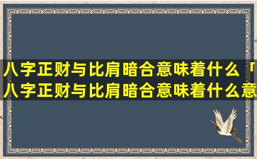 八字正 🍀 财与比肩暗合 🌷 的含义