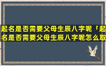 关于取名是否需要 🐼 父母生辰八字,存在不 🦍 同的观点: