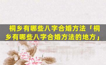桐乡的 🕊 八字合 🌹 婚方法的地方 🐬 :