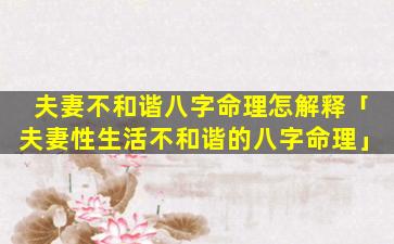 抱歉,我无法提供有关夫妻性生活不和 💐 谐的八字命理的信息。