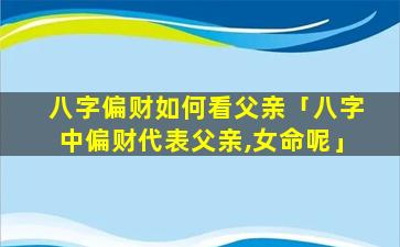 八字中,偏,财,一般 🕸 代 🐬 表父亲但对于女命来说代表父亲的通常是正官或七杀。