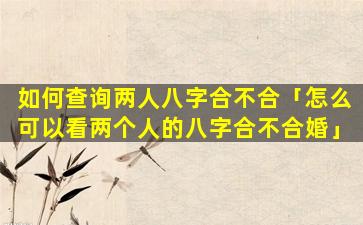 查询两人八字合 🐵 不合的方 🐯 法 🌵 :