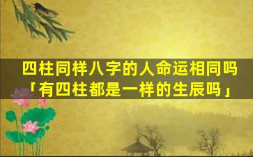 在某些罕见情况下,出生时间仅相差几秒钟的人可能会拥有相同的四柱。这是因为四柱是由出生年份、月份、日,期。和时辰决定的而这些时间在短时间内可能不会发生重 🦅 大变化