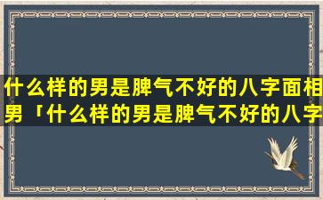 脾气不好 🌳 的八字 🐯 面相男: