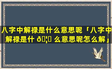 解禄在八字中代表 🐒 化吉解凶、发挥才华的含义。