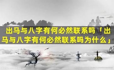 出马与八字有一定联系,但不是 🌵 必然的关系。