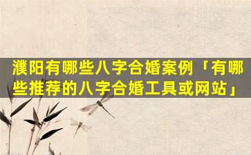 抱 🐡 歉 🕷 ,我 🐈 没有关于濮阳八字合婚案例的信息。