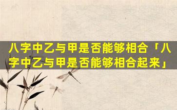 是 🐧 的,八字中乙与甲可以相 🦊 合。