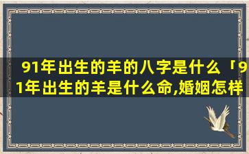总体来说,91年,出,生的羊命格较好有贵人扶助事业 🐺 、财、运感情都比较顺利。但,需。要注意健康问题避免过度劳累