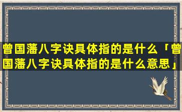 曾国 💐 藩八字诀 🐯