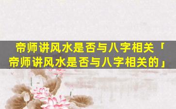 帝师讲风水与八字相关,但两者是不 🐱 同的概念。