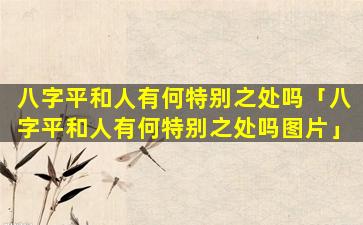 八字平和的人性格平和稳定,为人,随和寬厚做事稳妥可靠。虽,然,运程平稳顺遂 🦄 健康狀況較好但要注意过于平和 🐟 、缺。乏创新和遇事犹豫不决 🐧 的问题