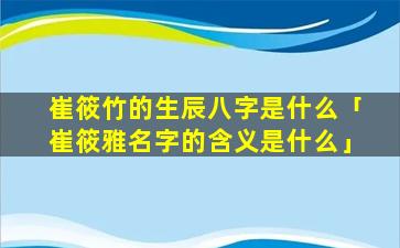 因此,崔 🐳 筱雅这个名字的含义可以理解为:出 🦁 ,身,名门音乐天赋出 🐛 众气质高雅。