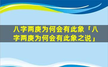 “八字两庚为何会有此象之说”这句话是一种民间的说法,并无科学或学术依据。在八字,命“理 🌹 ”学。中没有两庚会 🌼 产生特定现象的说法
