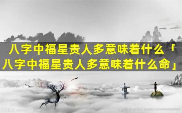 八字中福星贵人多,表示福气旺盛贵人 🐛 、运、强人、缘、好运势稳定长寿健康。具,有、这。些特质的人往往一生顺遂幸福美满