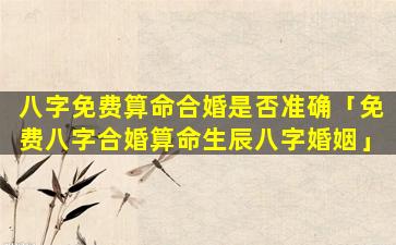 八字 🐞 免费算命合婚的准确 🐎 性因人而异,没 🦉 有绝对的标准。