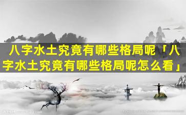 如何看八字水土格 🌳 局