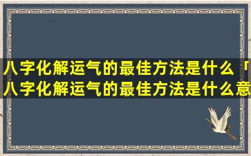 需要注意的是,八,字化解运气的最佳方法因人而异需要 🐱 结合个人的具体八字 🕊 命 🐞 理进行综合分析。建。议寻求专业命理师的指导和建议