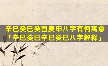 辛巳癸巳 🌷 癸酉庚申的八字寓意: