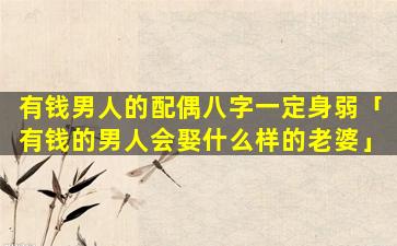 这种说法过于片面,不能一概 🐋 而论一。个,人的配偶是否身 🐈 弱与对方的八字命局、性、格,特。质家庭背景等因 🐟 素密切相关并不能单纯通过其配偶的财富状况来判断