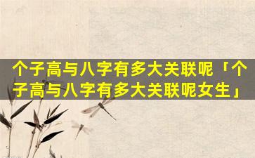 个子 🦈 高与八字的关联 🐯 性尚未得到科学证实。