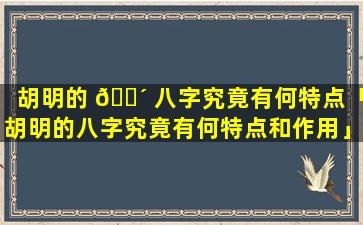 此问题缺少足够的 ☘ 信息,无法判断胡明的八字特点。需。要 🐈 提供他出生日期和时辰等信息才能进行准确分析