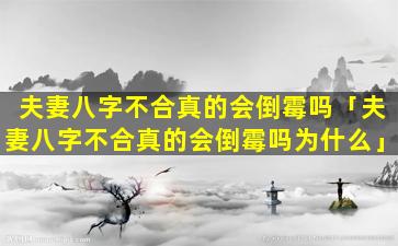 夫 🍀 妻八字不合是否会导致 🕷 倒霉的说 🐳 法