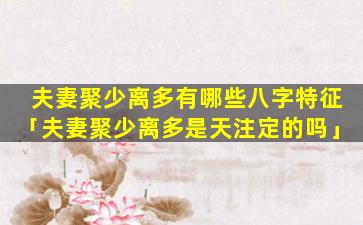夫妻 🌿 聚 🦆 少离多是否天注定是一个复杂的问 🐺 题,没有简单的答案多。种,因素可能会影响这一结果包括: