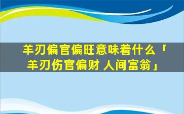 因 🌻 此,当一个人的八字命盘 🕷 中出现“羊刃伤官偏 🐞 财”,通,常认为此人命中富贵有成为人间富翁的潜力。